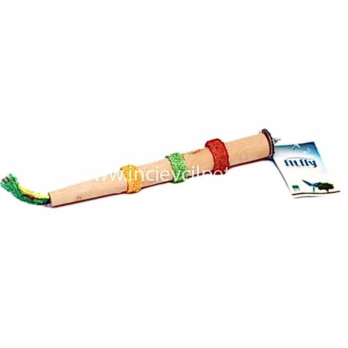 • Tüneğin 22 cm uzunluğunda ahşap gövdesi ve uç kısmında 5 cm uzunluğunda renkli ipler bulunmaktadır.