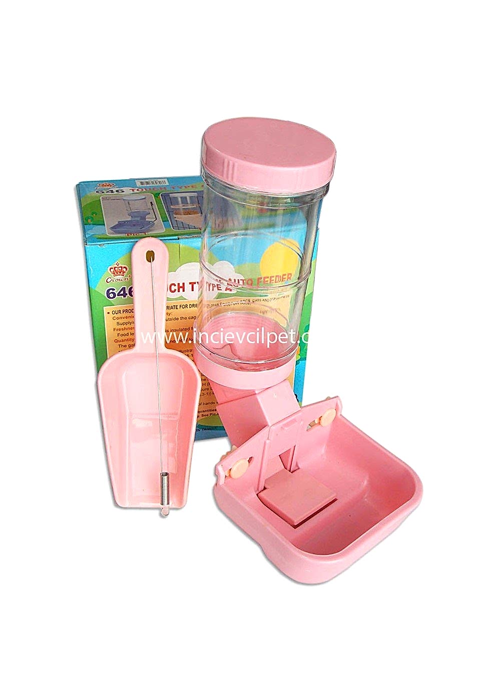 Taşıma kafeslerinde tellerin arasına monte edilmesi için mama haznesinde 2 adet plastik vidalı klipsi bulunan ürünün mama haznesinin de kafese sabitlenebilmesi için ayrıca çelik yay da bulunmaktadır.